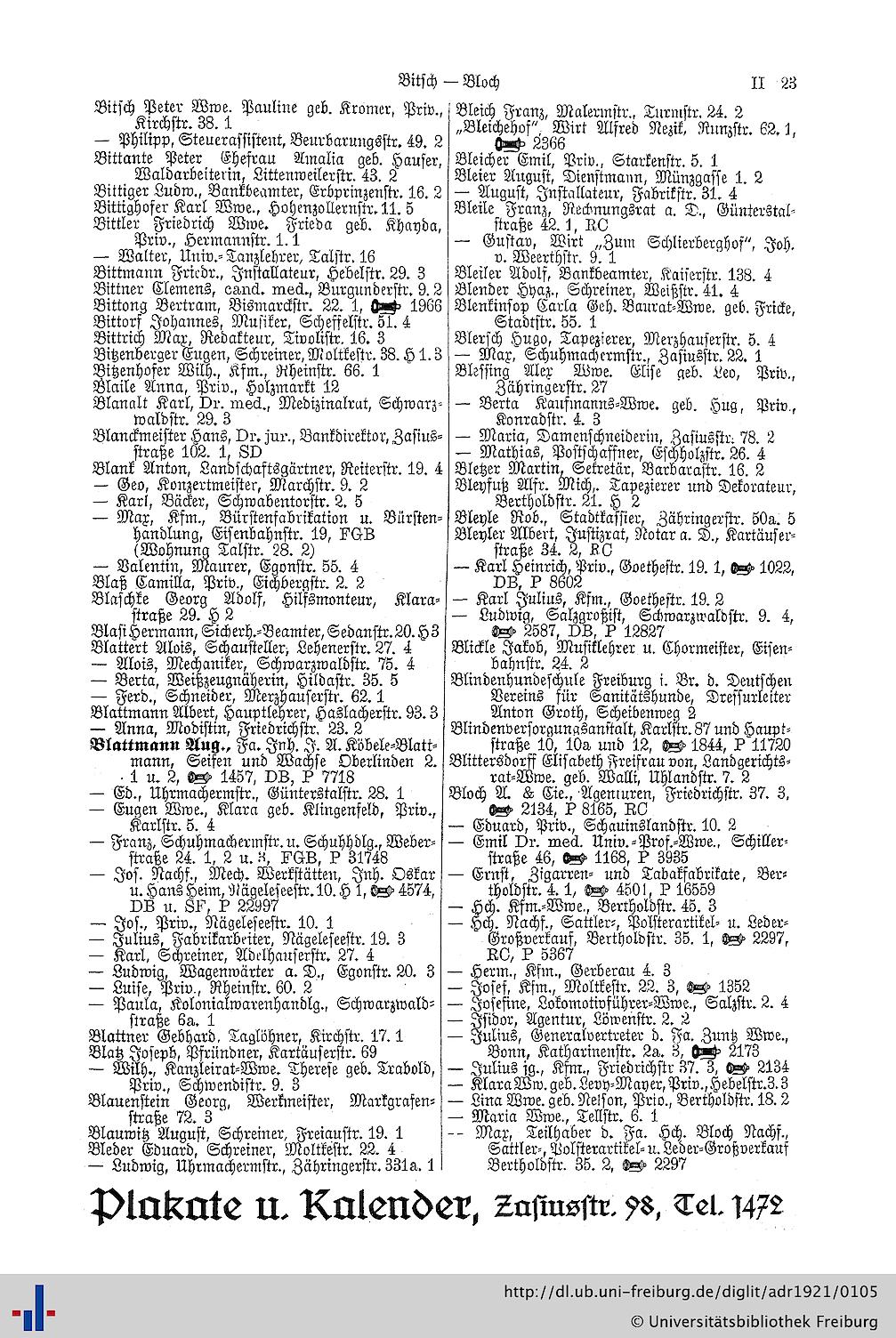 Adreßbuch der Hauptstadt Freiburg im Breisgau: für das Jahr 1921