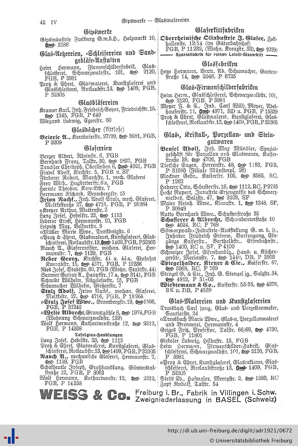 Adreßbuch der Hauptstadt Freiburg im Breisgau: für das Jahr 1921