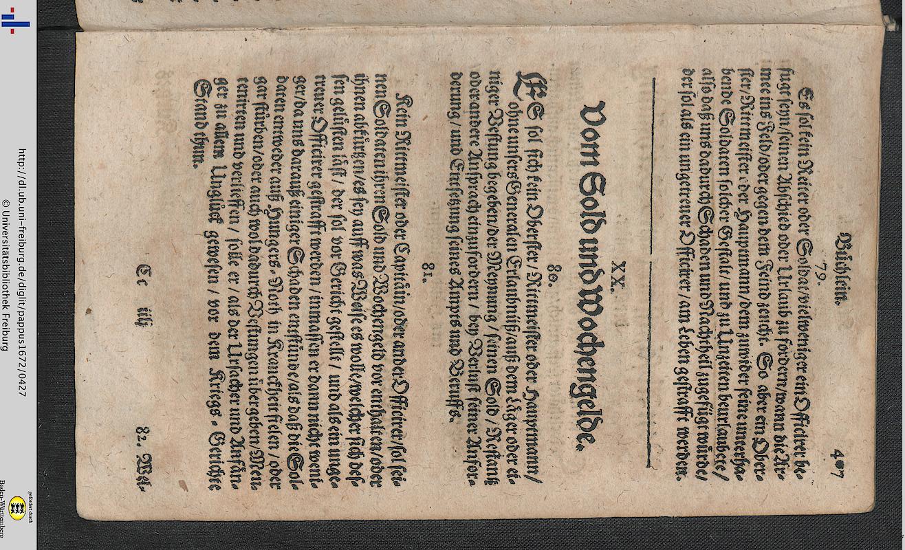 Corpus Juris Militaris recognitum, ac multis ex partibus auctum: oder Neu verbessertes und vermehrtes Kriegsrecht; worinnen enthalten der Käysere Maximiliani II. und Ferdinandi III. höchstlöblichsten Andenckens Articuls-Brieffe mit 33. Articuln auß Caroli V. Peinlichen Hals-Gerichtsordnung gezogen