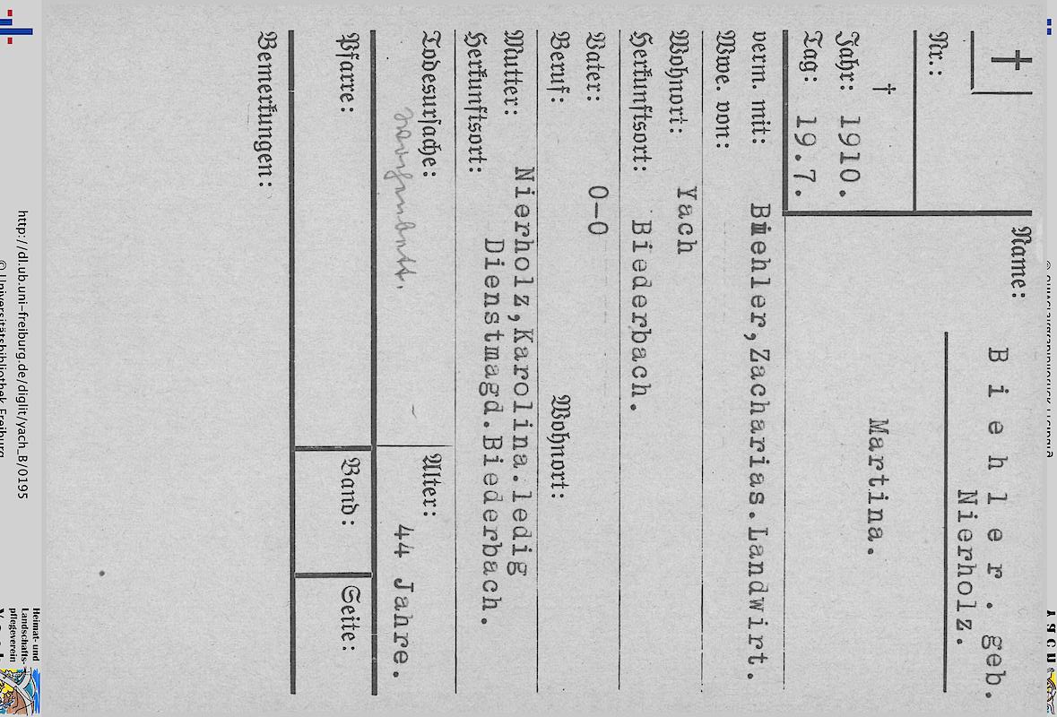 Personenkartei Yach: Anfangsbuchstabe B